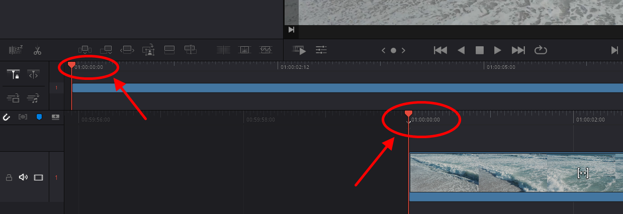 ↓ 아래 화면처럼 타임 라인의 시작 시간이 00:00:00:00이 아닌 01:00:00:00으로 되어 있을 경우