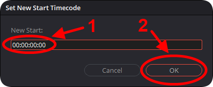 ↑ Start timecode를 00:00:00:00으로 변경했다면