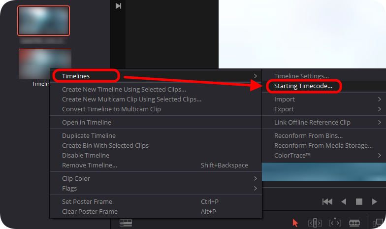 확장된 메뉴에서 "Starting Timecode"를 선택합니다.
