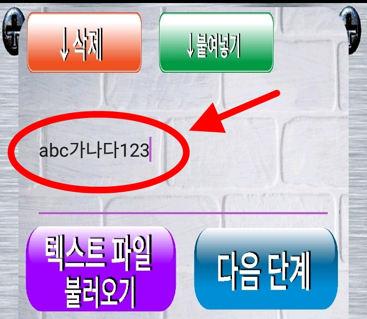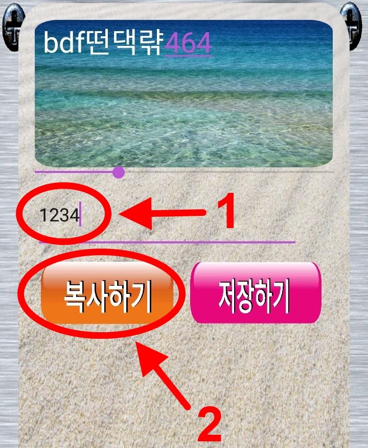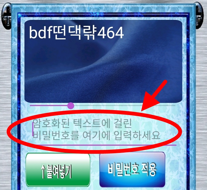 ↑ "붙여넣기" 버튼을 누르면 조금 전에 복사한 암호화된 텍스트인 "bdf떤댁랶464" 텍스트가 자동으로 입력됩니다.