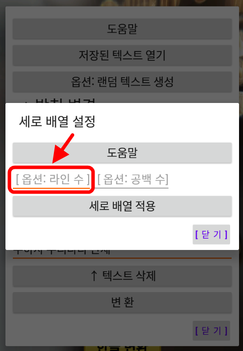 ↑ "라인 수" 입력 칸에 세로로 배열될 전체 글의 총 라인의 수를 입력합니다.