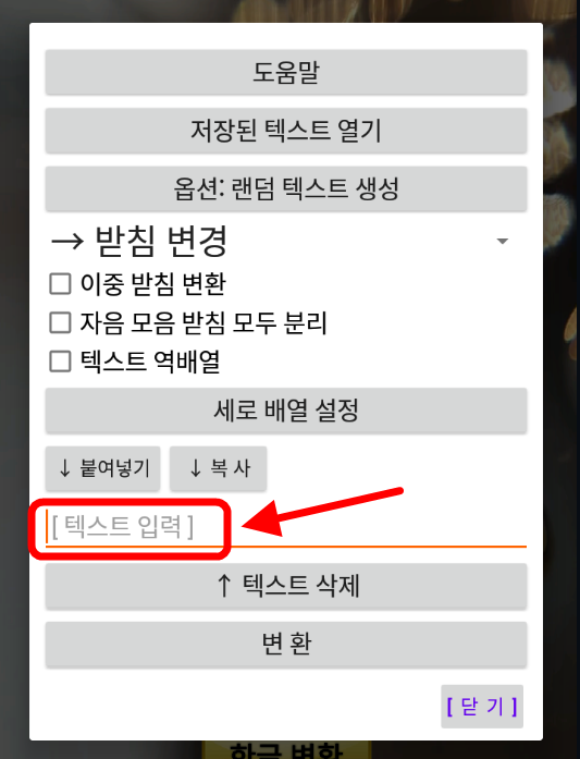 ↑ 한글 변환기 첫 하면에서 "한글 변환" 버튼을 누릅니다.