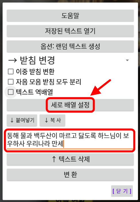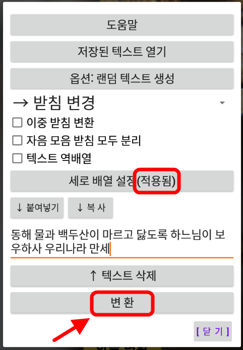 ↑ "텍스트 입력" 칸에 세로 방향으로 바꿀 한글을 입력합니다.