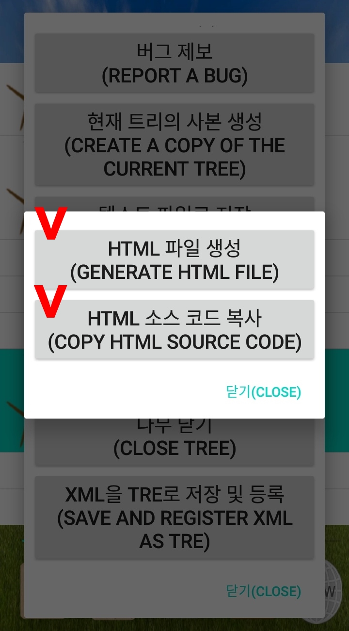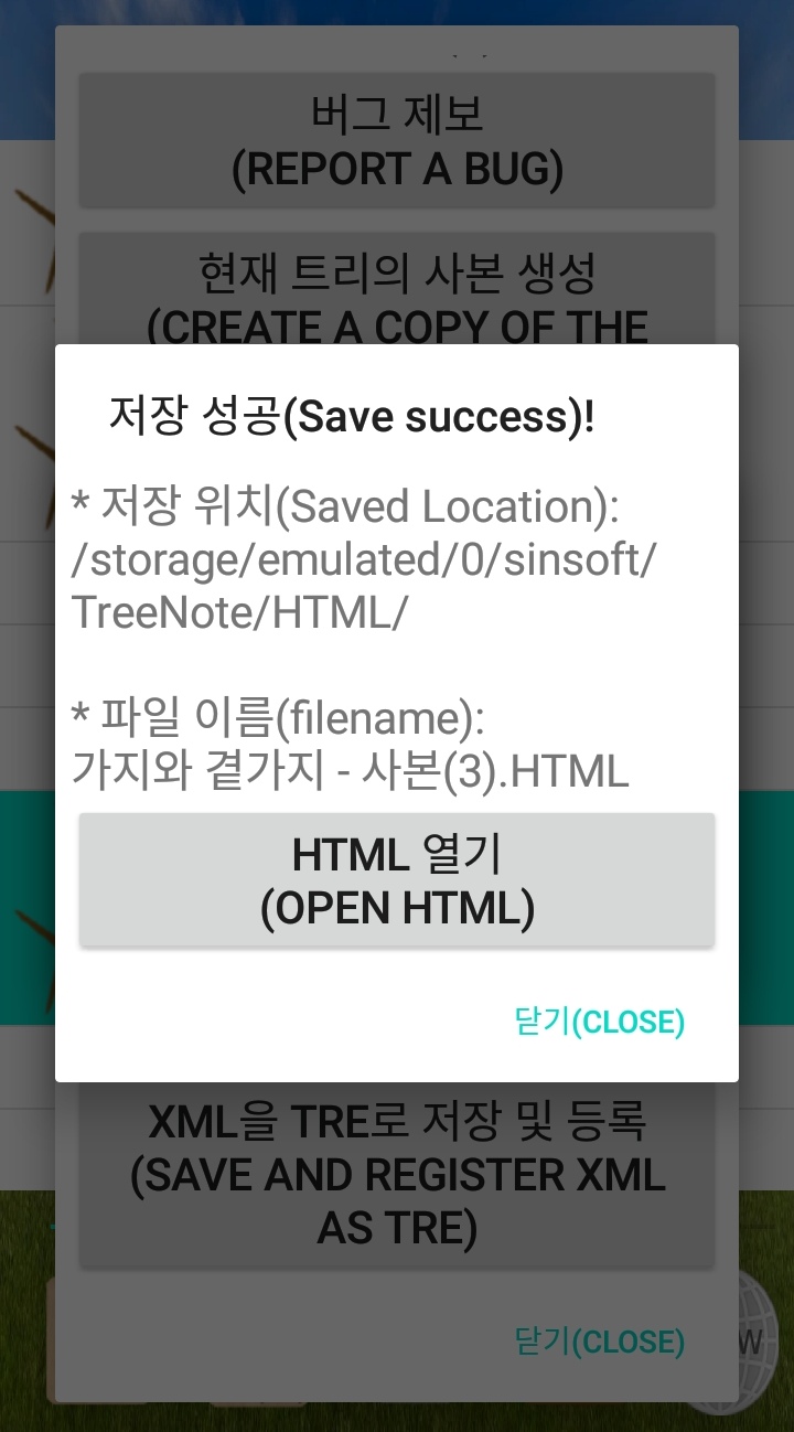 트리를 HTML파일로 만들려면 HTML 파일 생성 버튼을 누릅니다