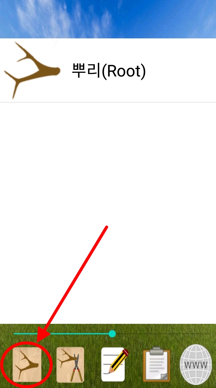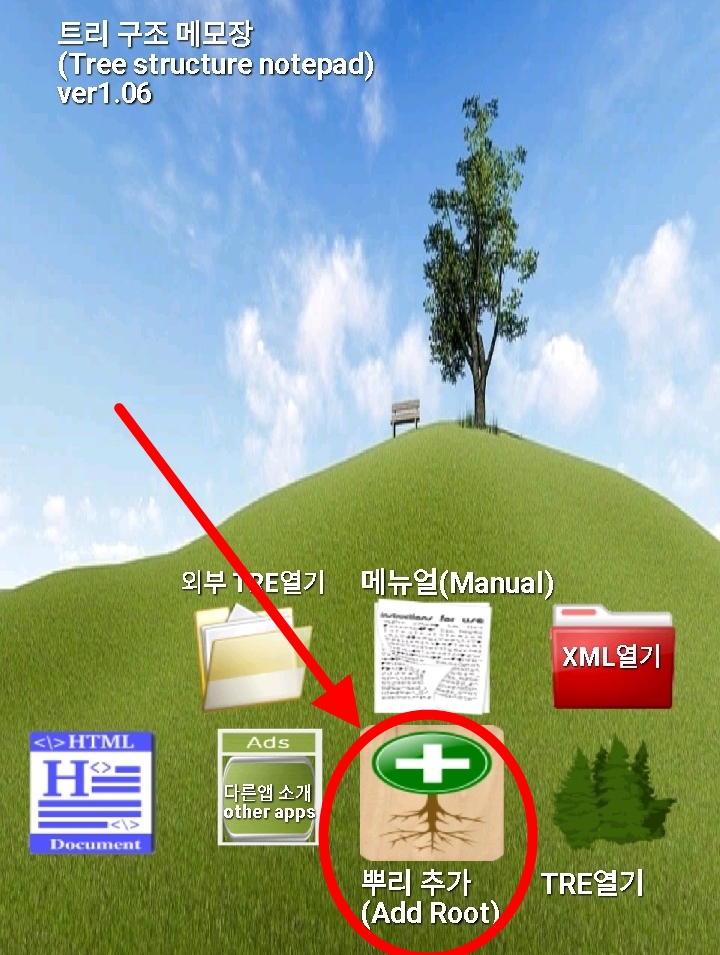 첫 화면에서 뿌리 추가 버튼을 누릅니다