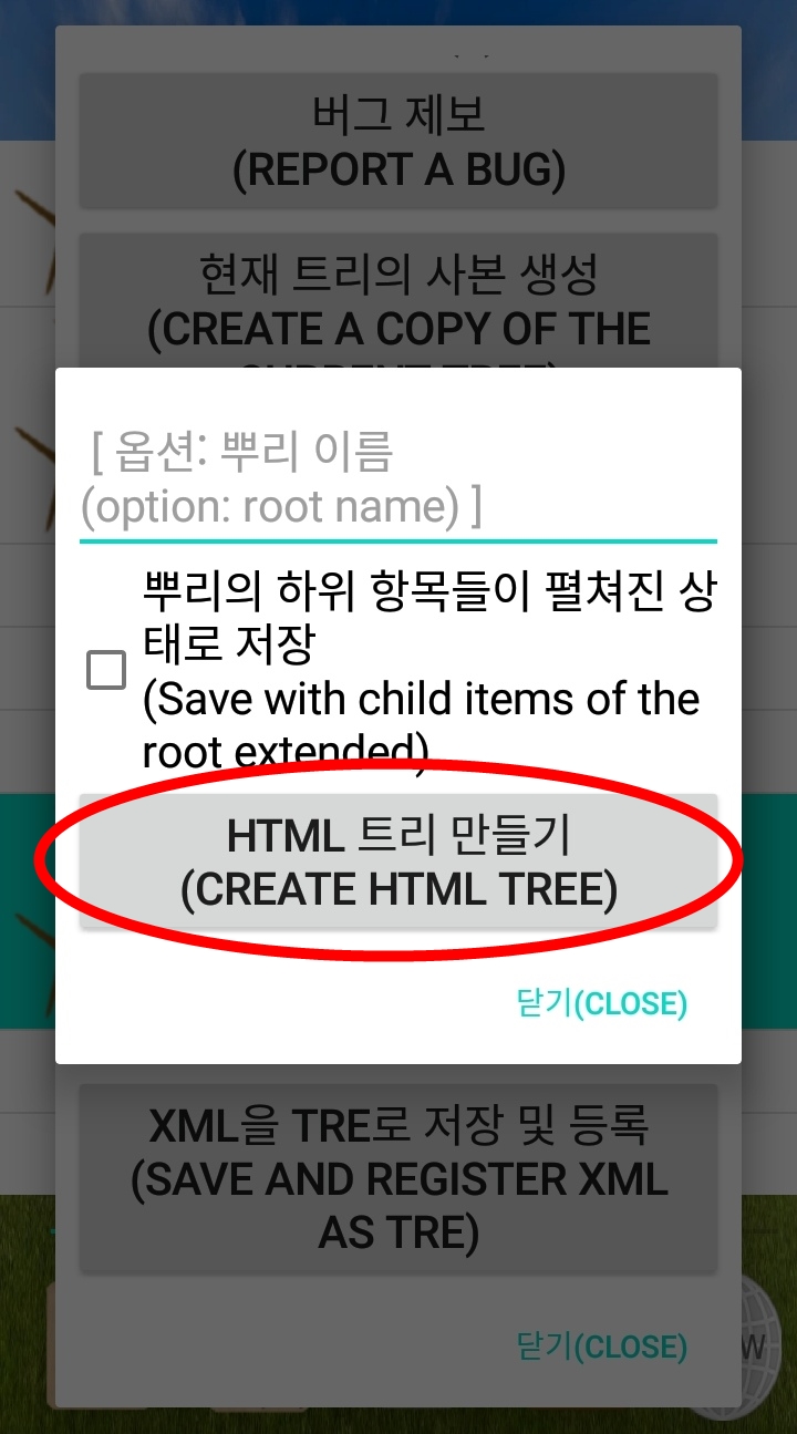 트리를 HTML파일로 만들려면 HTML 파일 생성 버튼을 누릅니다