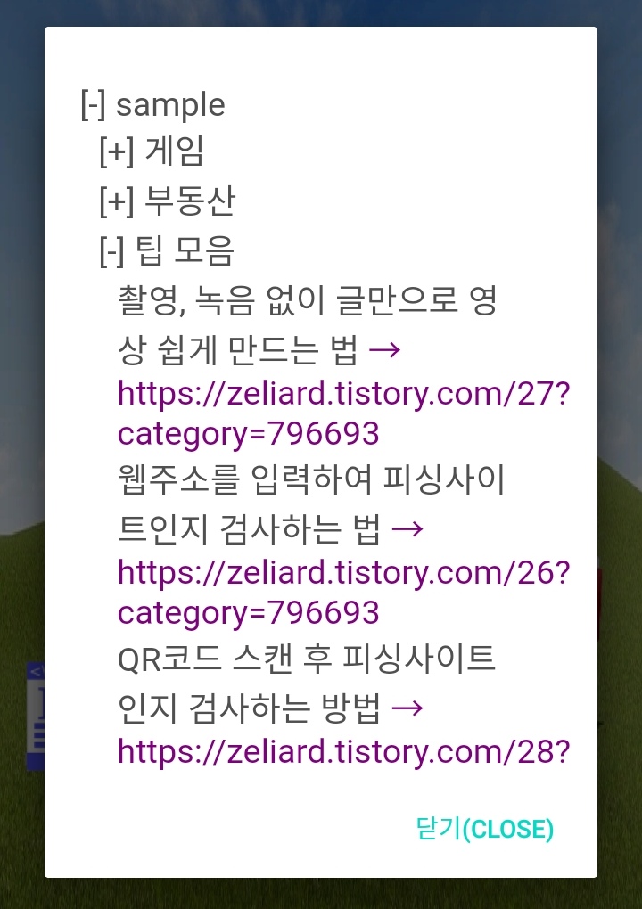 트리를 블로그에 삽입할 경우 소스 복사 후 블로그 HTML모드에 붙여넣기 합니다