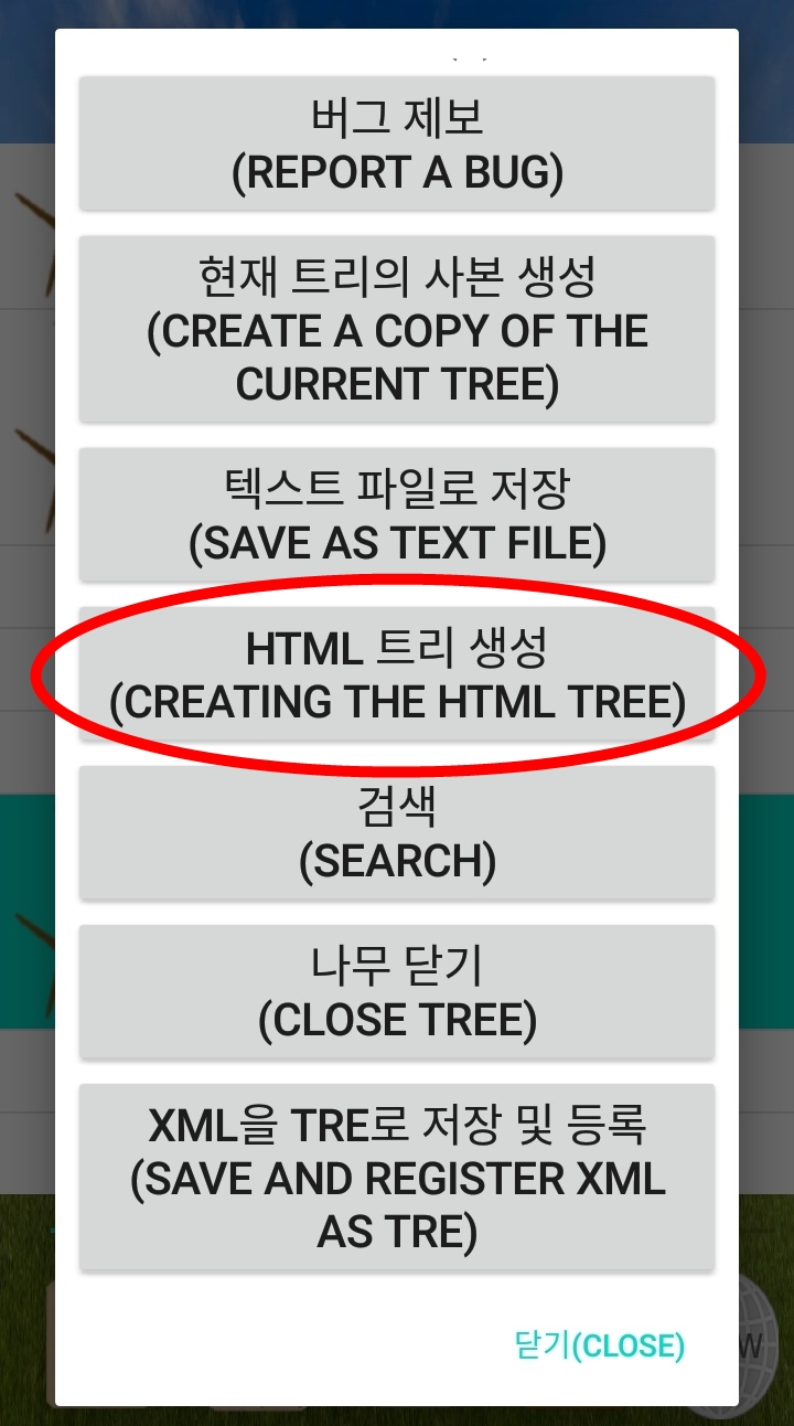 뒤로 가기 버튼을 누른 후 HTML 트리 생성 메뉴를 선택합니다