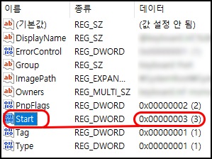 3으로 되어있다면 Start 항목을 더블 클릭합니다.